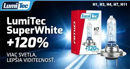 LumiTec Super White +120% je moderná autožiarovka so špeciálnym zafarbením, ktoré umožňuje dosiahnuť biele svetlo s farebnou teplotou blízkou dennému svetlu (cca 4300–4500 K). Poskytuje o 120 % viac svetla na vozovke než štandardné halogénové žiarovky, vďaka čomu lepšie zvýrazňuje dopravné značenie, prekážky aj okraje cesty.